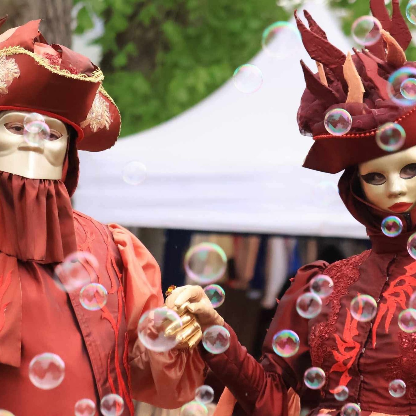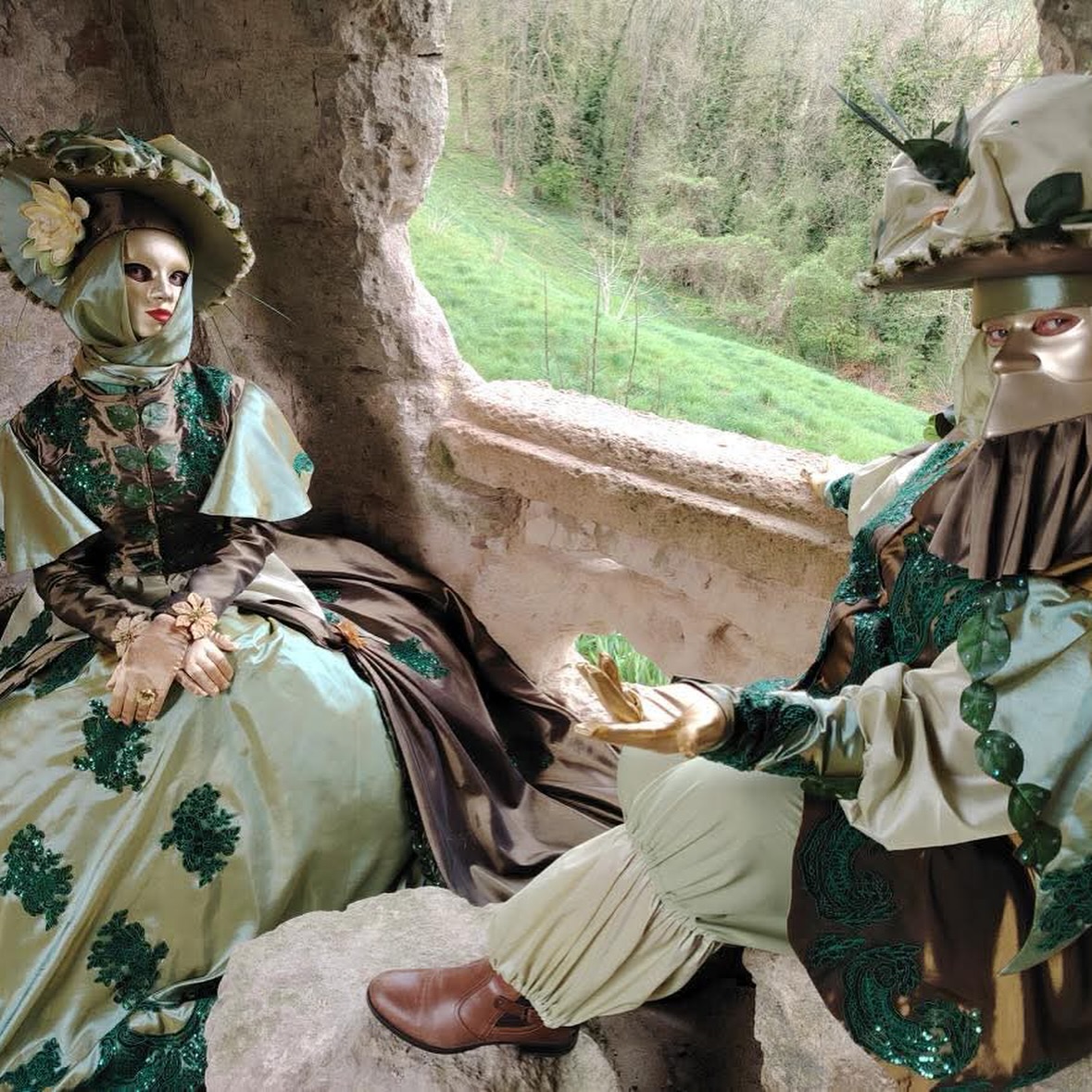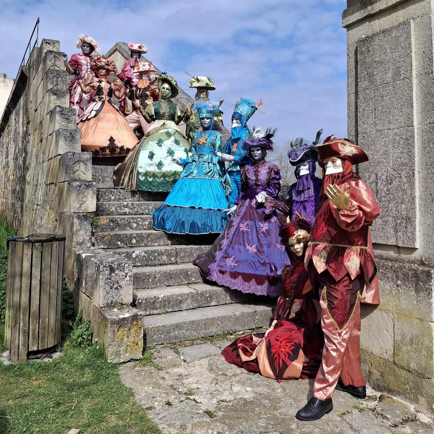 Six couples de Vénitiens ont déambulé avec élégance et féérie dans le parc du château, apportant une touche de magie et de mystère à l’événement.🎭